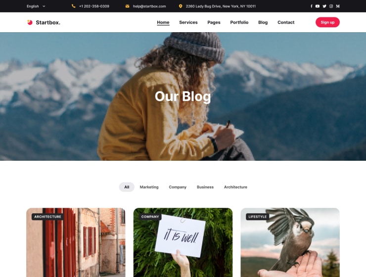 Need a Blog? Not a problem! With Startbox, you can present your blog as the template includes a Blog page and a Post to keep your Customers up to date with the latest news.