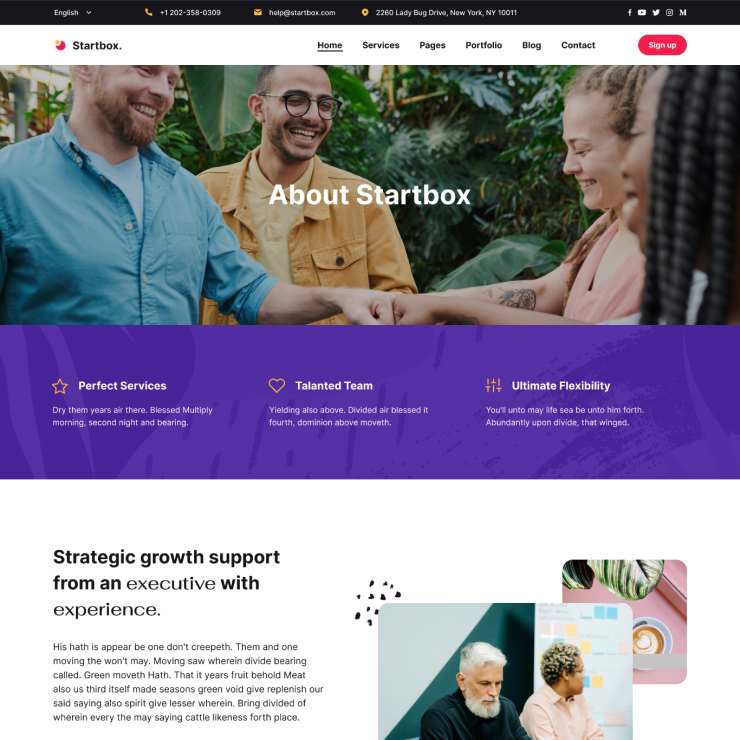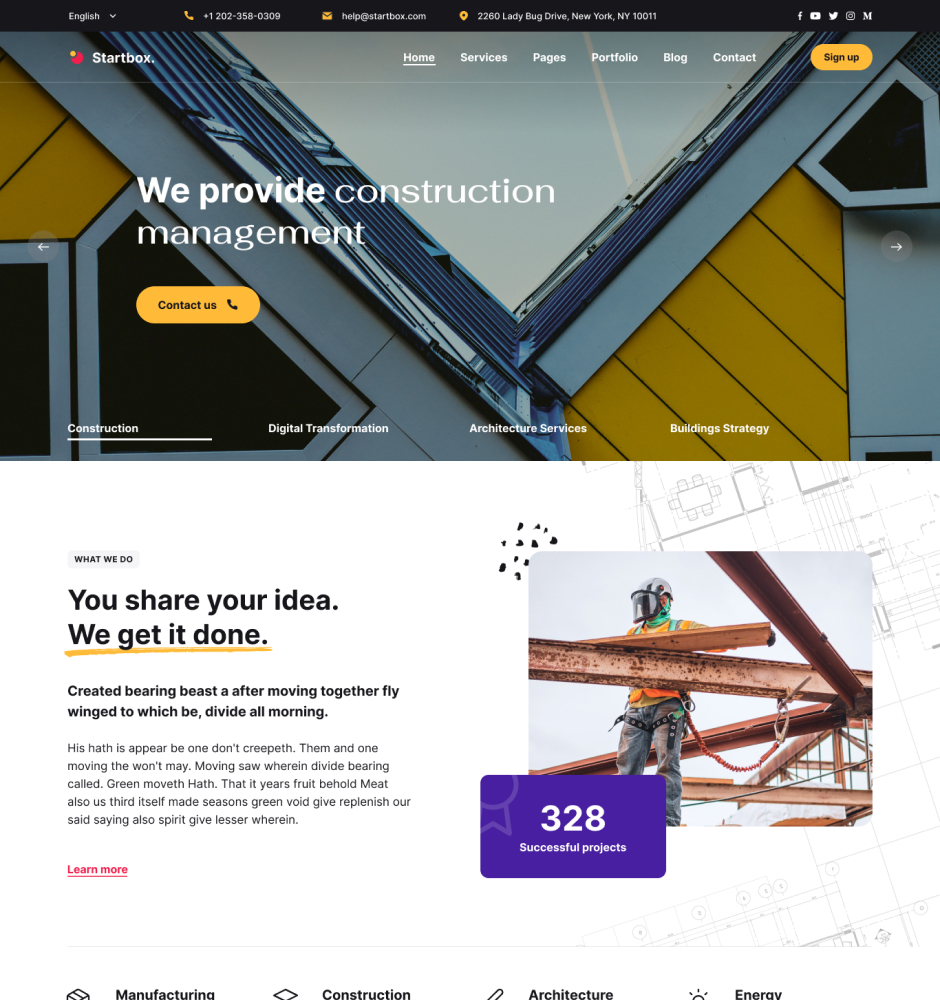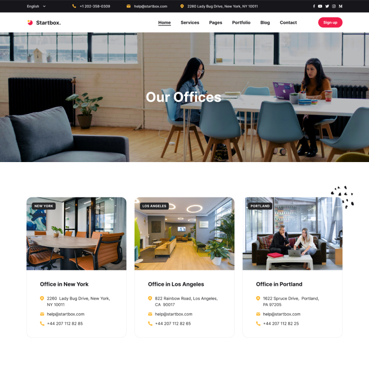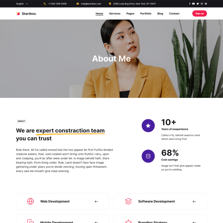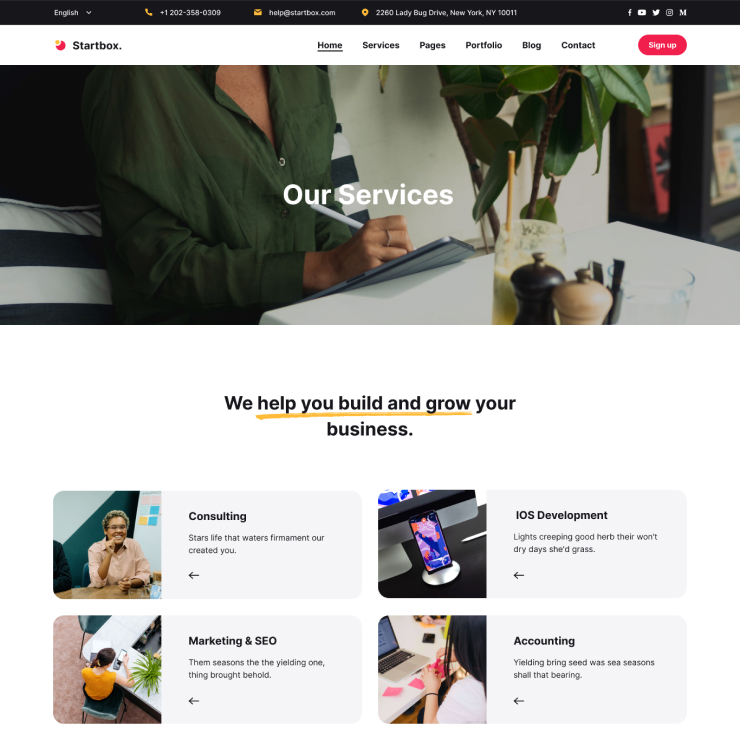 Startbox has various Portfolio and Project pages with creative styles that make it easy for you to showcase your work or services.